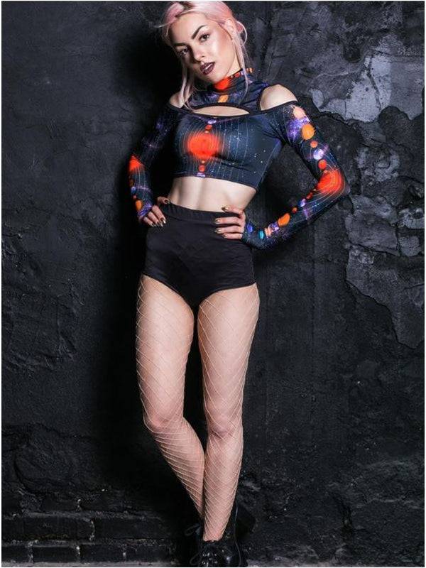 Space Invader Long Sleeve Top - UV Reactive Cyber Rave Shirt in Premium Italian Fabric