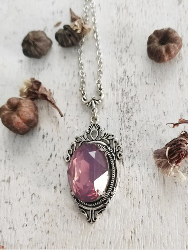 Alicia Gothic Necklace with Light Pink Gemstone - Enchanting Fairy Inspired Design - Op voorraad is in bestelling en wordt verzonden zodra het weer op voorraad is
