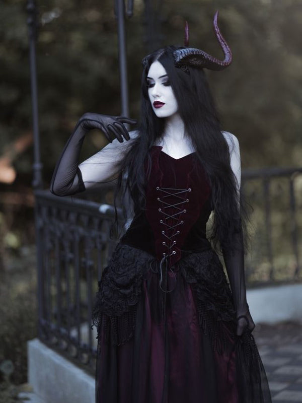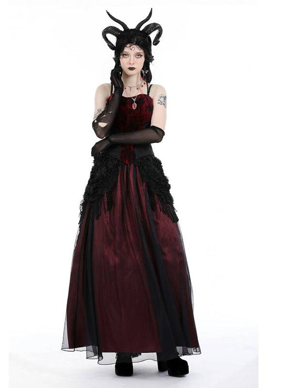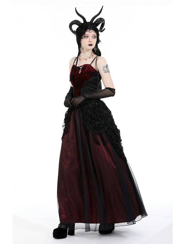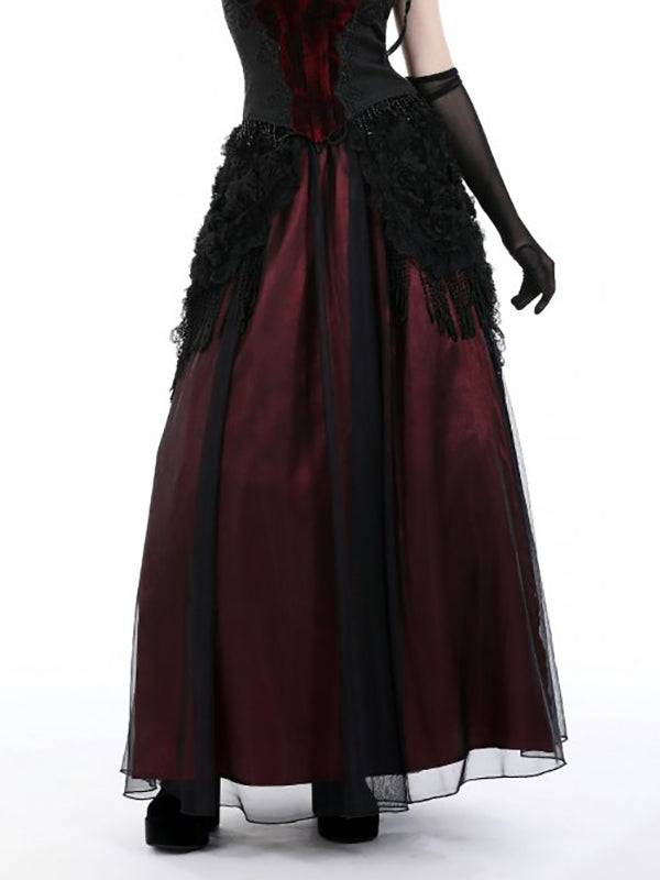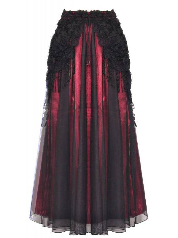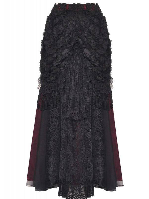 Dark In Love Long Red Skirt with 3D Flowers and Tassels - One Size, Elastic Waist, Polyester