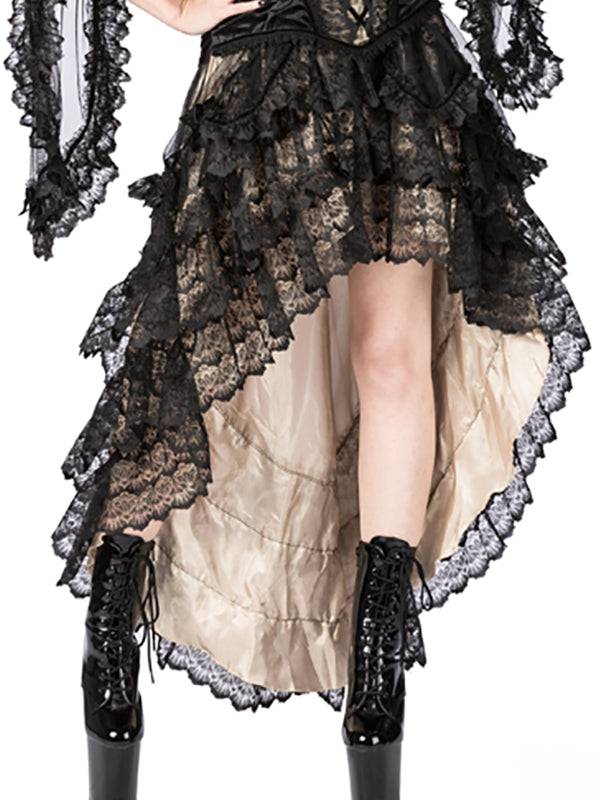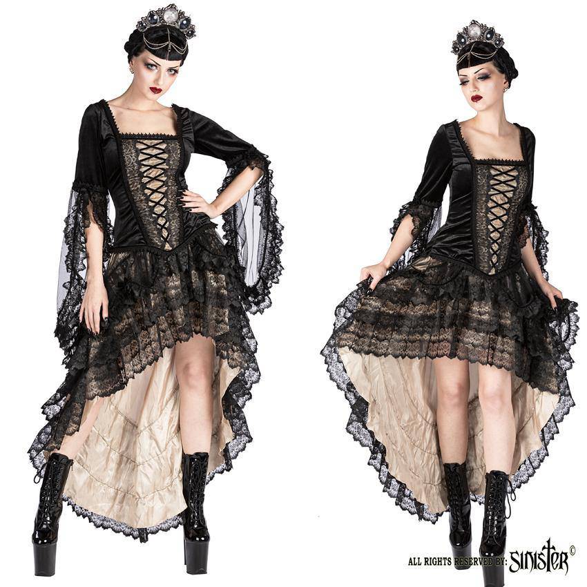 Sinister. Lange gothic rok met mesh, satijn en kant. Elastische taille.