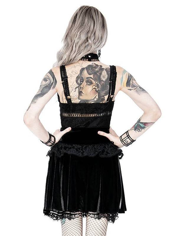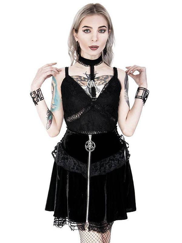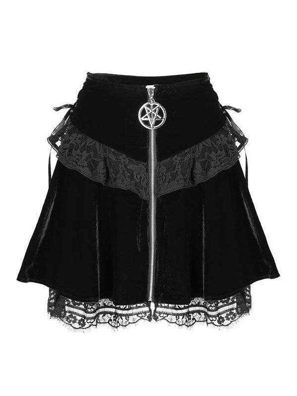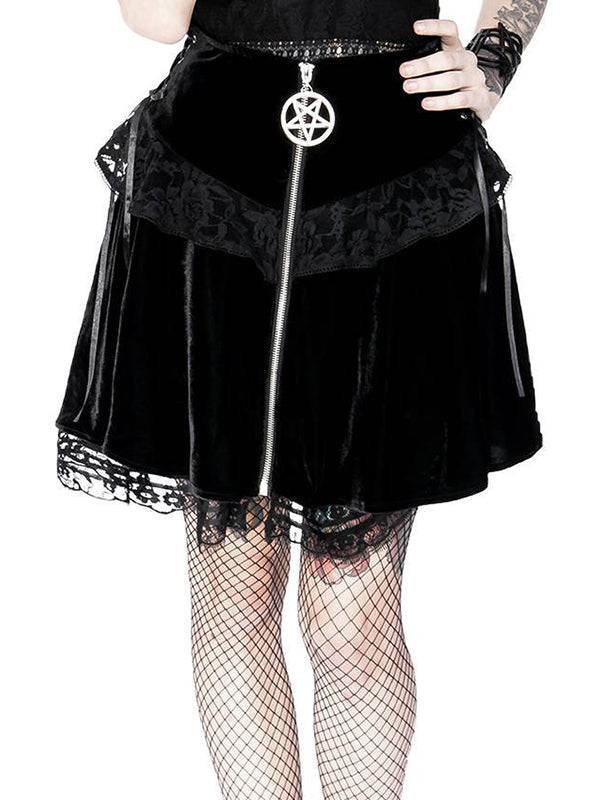 Pentagram Velvet Skirt With Lace And Lacing - Soft Unique Design By Restyle - XS is in bestelling en wordt verzonden zodra het weer op voorraad is