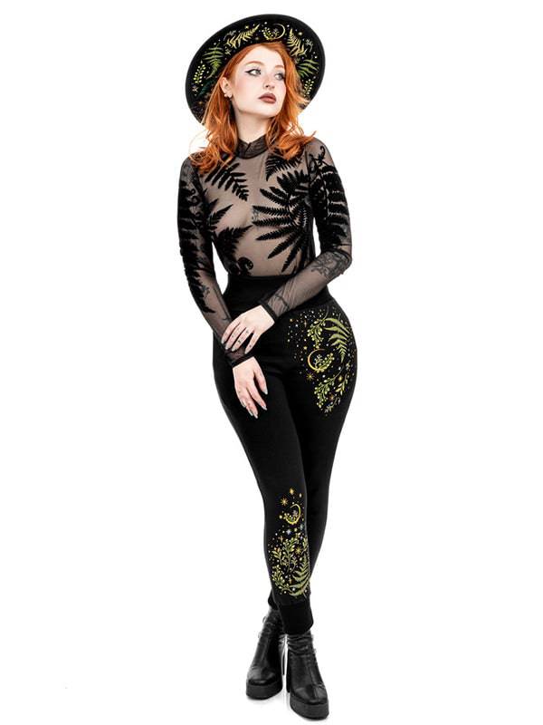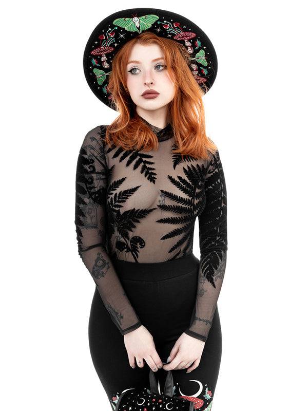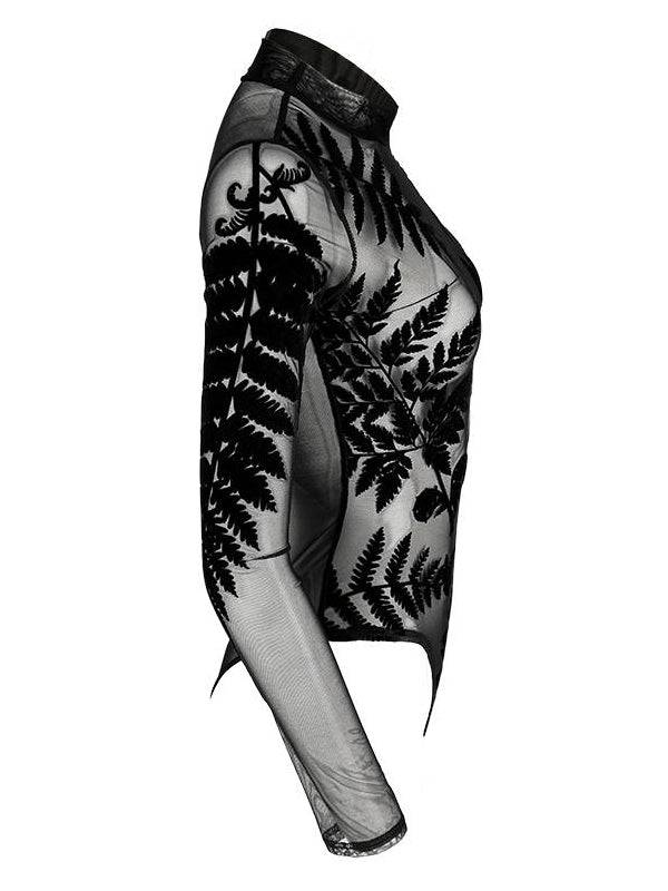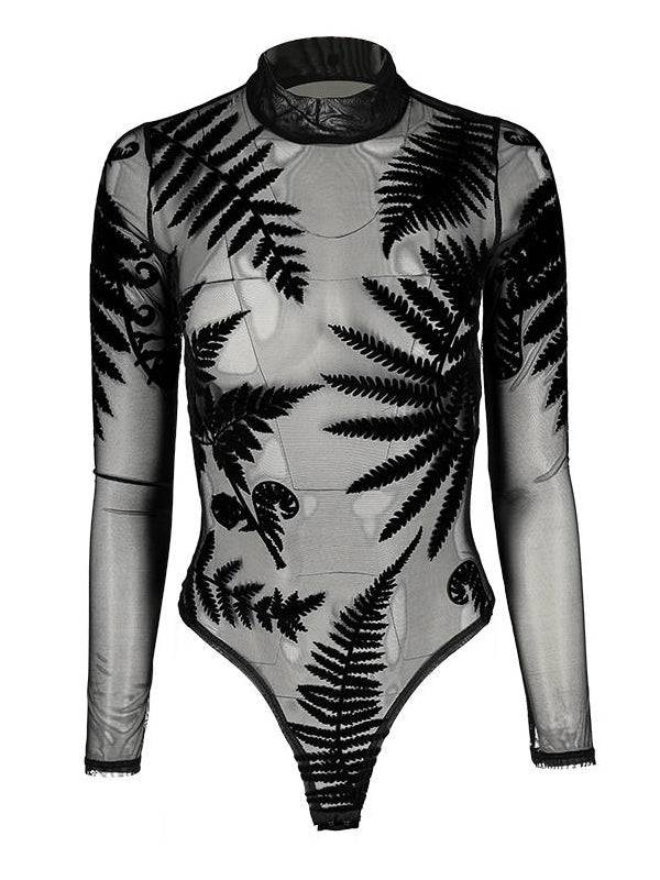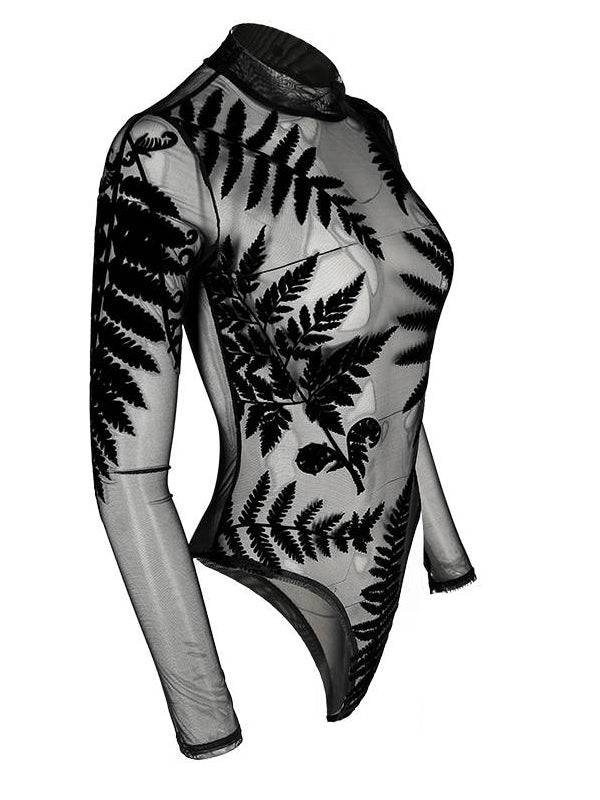 Mesh Bodysuit with Long Sleeves - Forest Witch Luxurious Velvet Print by Restyle - S is in bestelling en wordt verzonden zodra het weer op voorraad is