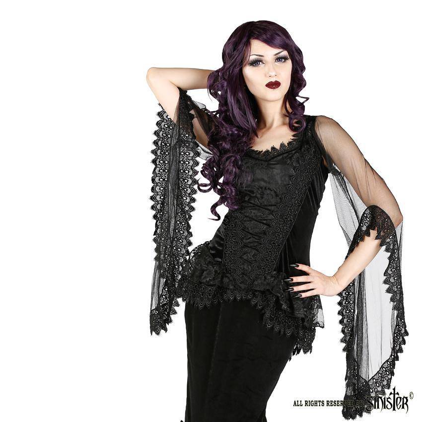 Black Velvet Gothic Top With Mesh And Lace By Sinister Clothing - Unique Vintage Style