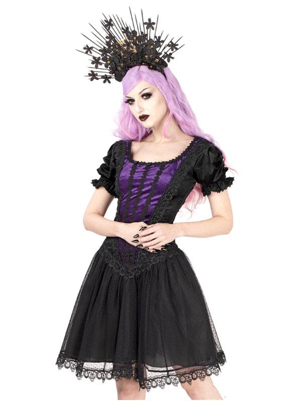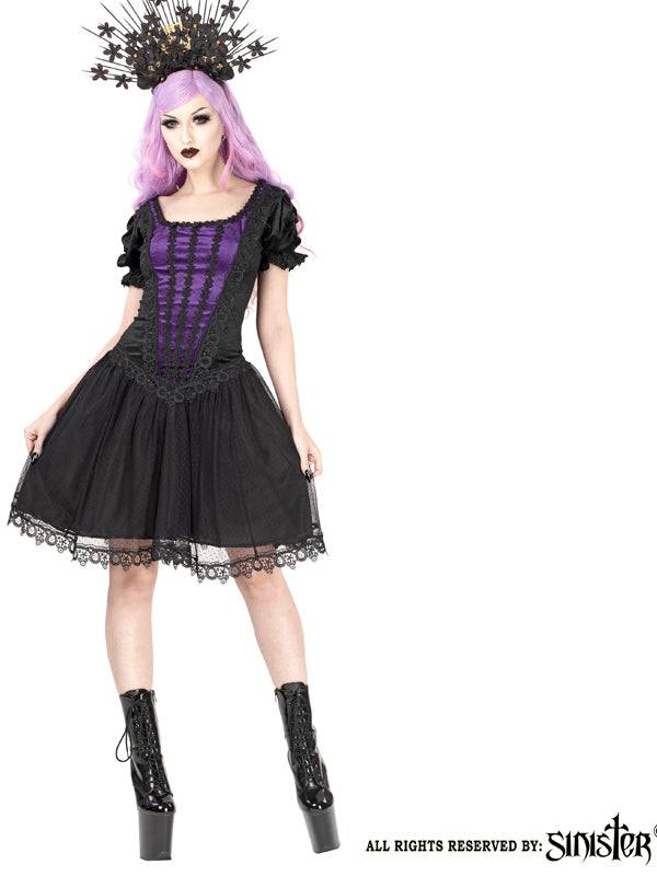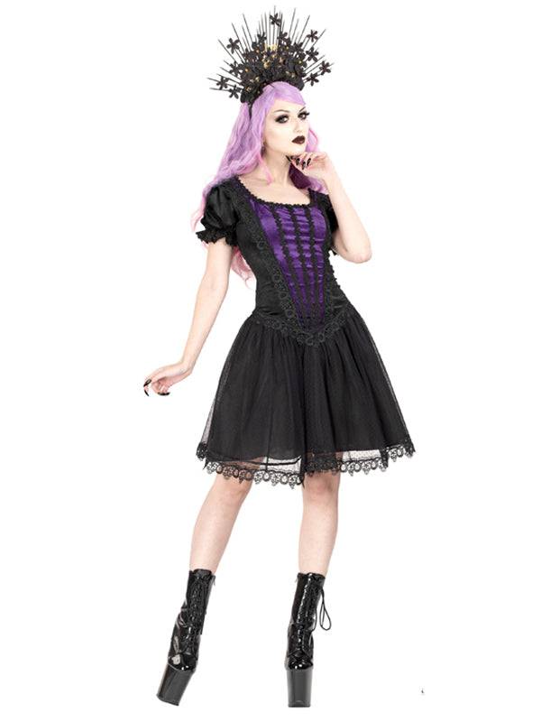 Sinister Talisman Mini Dress - Round Neck, Puff Sleeves & Venetian Lace Trim