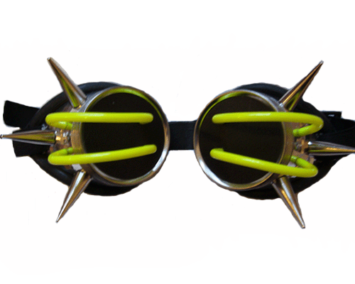 Goggles van metaal en rubber met spikes en gele slangetjes